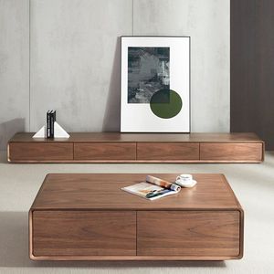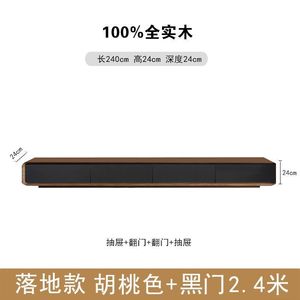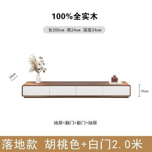 全实木电视柜中古风极简风地柜胡桃色小户型客厅窄款落地整装地台