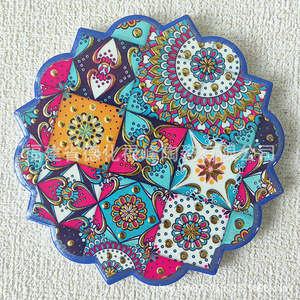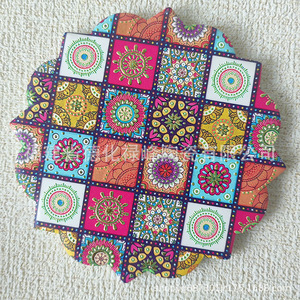 工厂跨境民族风陶瓷咖啡杯垫餐垫陶瓷浮雕烫金隔热桌面装饰垫