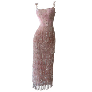ライトラグジュアリーセレブスタイルフレンチスタイルドレススカート刺繍スパンコールタッセルヒップスカートドレス69266+Y472