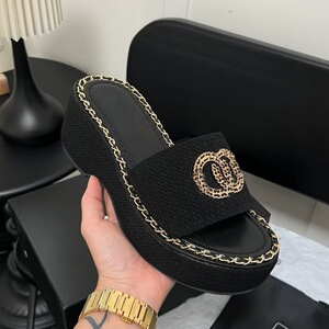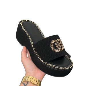 2025 新しいスタイルの小さな香りスタイル中空織りフラットソールスリッパアウターウェア高さチェーンビーチスリッパ女性の夏
