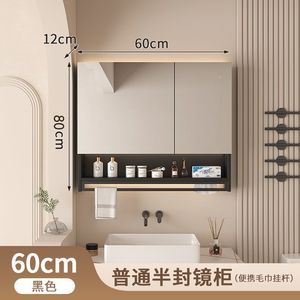 A08 エレガントブラック普通ミラーキャビネット(タオルバー)