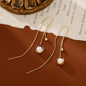 珍珠长款流苏耳线小众轻奢高级感铜镀真金高保色显脸瘦女耳环批发