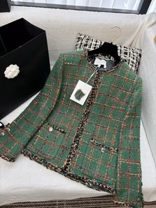 Nanyou 直接供給 25 初秋の新しいフレンチセレブヘビーデューティツイードウールジャケットクラシックチェック柄ラウンドネックジャケット