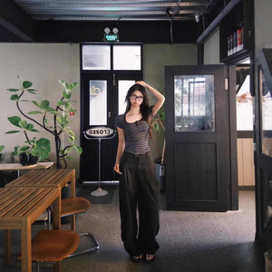 韩系条纹U领正肩短袖t恤女夏季2025新款修身显瘦收腰短款辣妹上衣