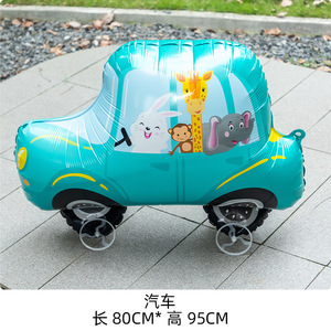 インターネット有名人の同じスタイルの歩く車輪付き立ち漫画動物アルミフィルムバルーンリードバルーン子供の写真小道具ギフト