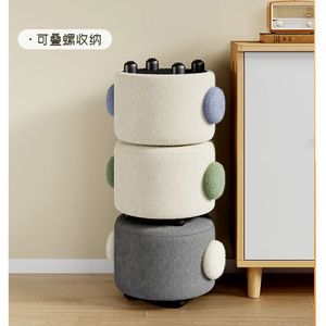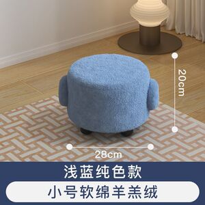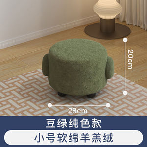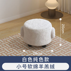 泰迪绒软座带把手圆凳 玄关客厅换鞋茶几多功能家用矮凳