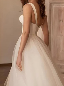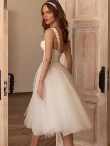 2025跨境新款新娘抹胸吊带短款婚纱订婚领证简约法式显瘦连衣裙女
