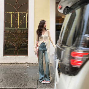 2025 ジェントルペーパーマン V ネックニットカーディガンレディース夏ミドル丈スリムフィット中空薄型日焼け止めブラウス