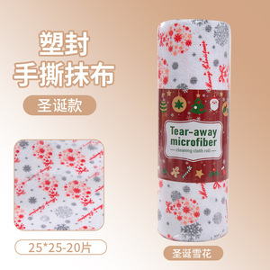 クロスボーダークリスマスプリントマイクロファイバー手ちぎり雑巾キッチン増粘吸収性糸くずの出ない怠惰なクリーニングディッシュタオル
