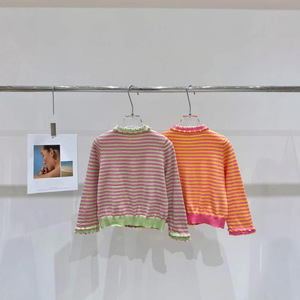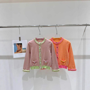 25年早秋新款香家重工排扣花边条纹针织长袖单排扣开衫宽松女上衣