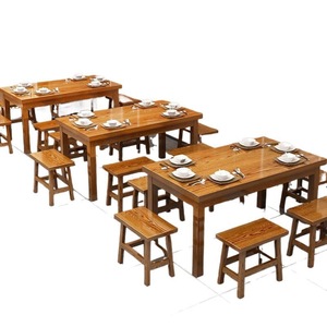 面馆桌椅饭店小吃店餐桌椅餐桌组合实木餐馆食堂桌子餐厅烧烤碳化