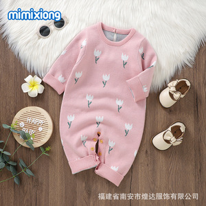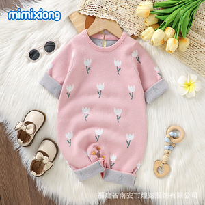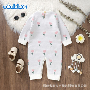 インホット販売秋の新スタイル幼児チューリップの花ジャカードワンピースロンパース女の赤ちゃんジャンプスーツ