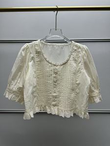 法式小众25年早秋新款U型领花边拼接风琴褶皱衬衫+高腰A字半身裙