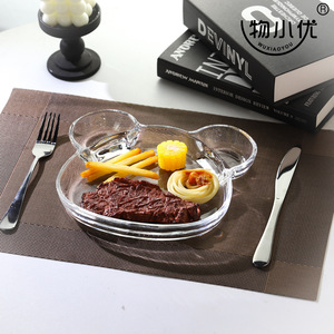 创意玻璃家用饺子盘带醋碟小吃零食水果盘小吃盘扇贝壳分餐盘礼品