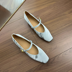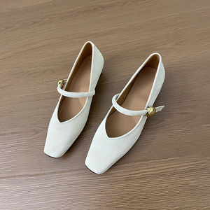 シープスキン〜女性用フレンチスクエアトゥシューズ、美しい春のバレエシューズ、レトロなワンラインバックル太ヒールチャイナドレスメリージェーンシューズ