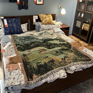 阿尔卑斯山风景棉线挂毯线毯盖毯客厅小红书diy网红挂毯装饰画