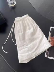 白色亚麻短裤女夏季新款外穿a字裤宽松阔腿裤薄款休闲中裤五分裤