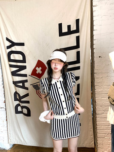aaaaxbbb ラブ・ビフォア・ザ・ドーン ニットスーツ ホワイト/ダイヤモンド/ストライプ ポロトップス ショートスカート