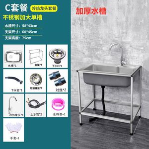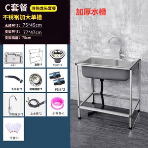 キッチン家庭用ステンレス鋼シンクシングルシンクスタンド付き食器洗いシンク大型シングルシンク洗面台