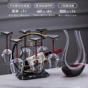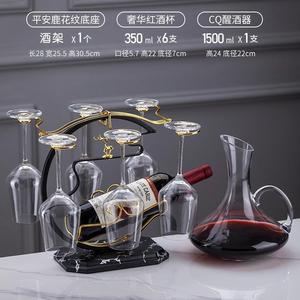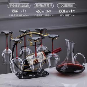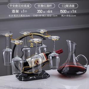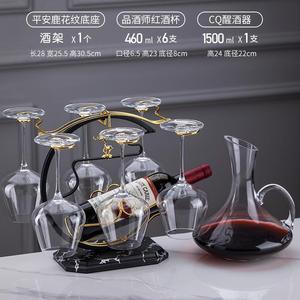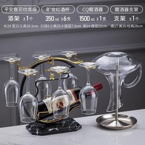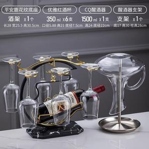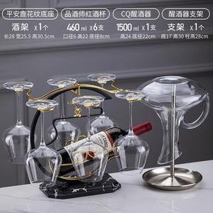 CQ ハンドル付きデカンタ + デカンタラック + 広西ワイングラス 350ml + 大理石模様の平安福鹿ワインラック
