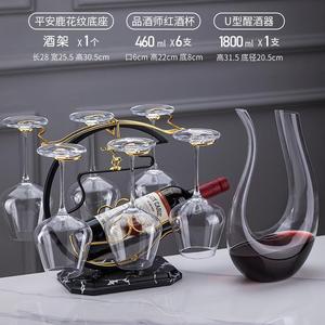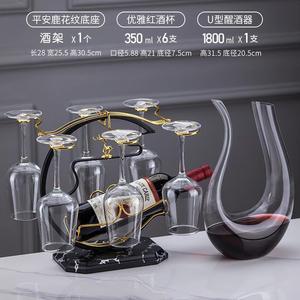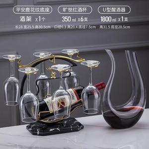 U字型デキャンタ+高級クリスタルカップ350ml+大理石模様の平安富鹿ワインラック