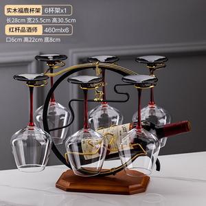 ブラックタイ赤ワイングラス 460ml + 無垢材底 Ping An Deer ワインラック