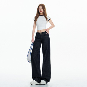 浅蓝美式复古牛仔裤女2025年夏季宽松低腰不贴腿窄版直筒阔腿裤子