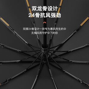 【自動巻き12本骨】24本強化繊維黒糊☆晴雨兼用 - ウートンライス