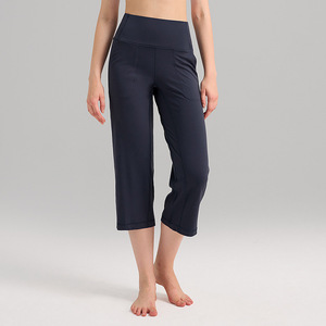 ワイドレッグスポーツパンツレディースカジュアルハイウエストフィットネスルルヨガパンツストレート通気性速乾ルーズ8点パンツ23インチ