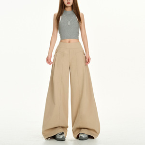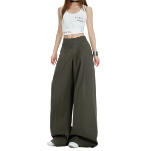 美式新款军绿色休闲裤女夏季宽松垂感百搭慵懒设计显瘦拖地阔腿裤