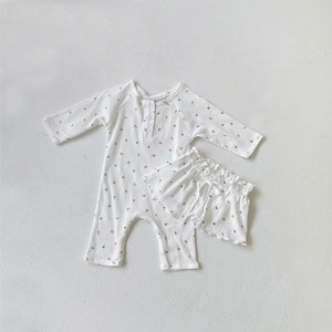 2025秋新款新生儿衣服a类婴儿纯棉复古小碎花长款包屁衣+披肩两件