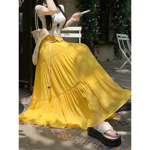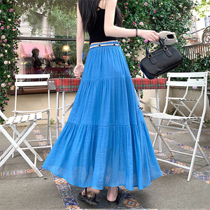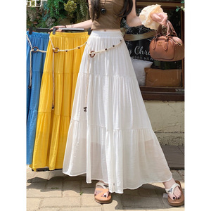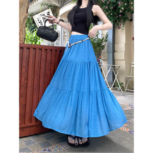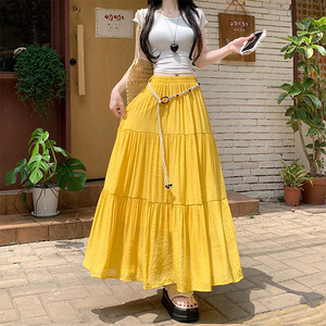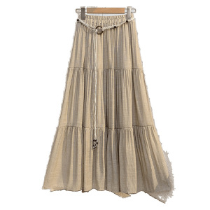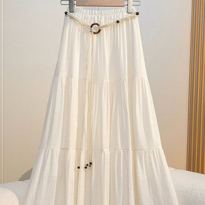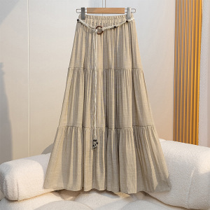 レトロスタイルのコットンとリネンのスカート女性の夏ボヘミアンハイウエストスリムドレープAラインスカート気質スカート