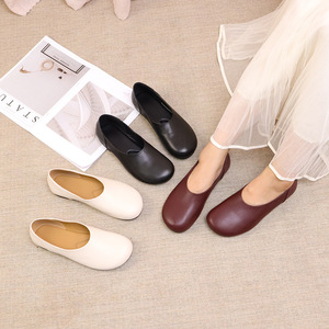 2025 夏の新ラウンドトゥかわいいコンパクトデザイン本物の牛革の女性の靴フラットカジュアルデイリーシューズ女性のための