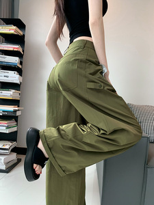 デザインされたアメリカンレトロなホットガールシミターパンツ夏薄い多用途スリムマルチポケットワイドレッグワークカジュアルパンツ