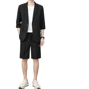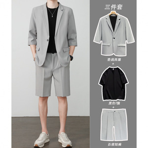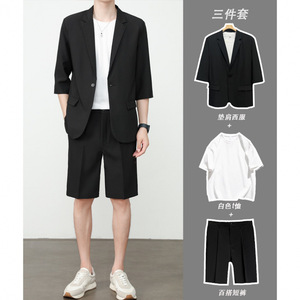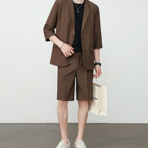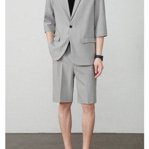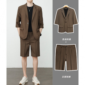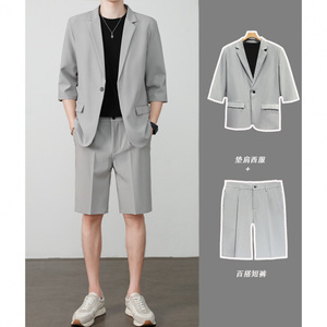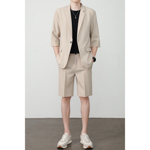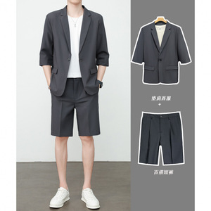 クロスボーダー夏薄手半袖スーツメンズショートパンツカジュアル七分袖ジャケット半袖スーツスーツファッション