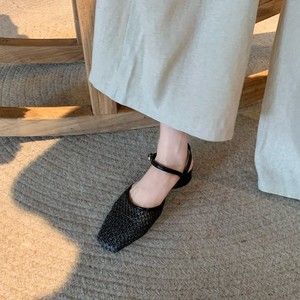 グレープママと同じスタイルが入荷しました~フレンチ中空織りスモールスクエアトゥ浅口太ヒール万能バックホールサンダル女性用夏