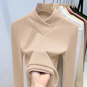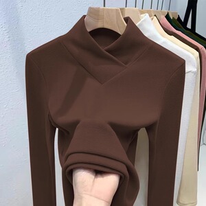 欧货港风气质修身螺纹德绒长袖打底衫2025秋冬季新款半高领内搭女