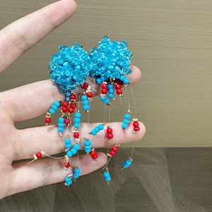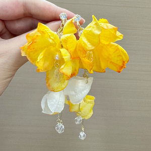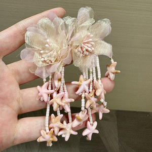 田园风串珠花朵流苏雪纺花瓣耳钉