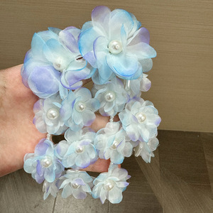 ins风布艺珍珠花朵流苏串珠圆片耳钉