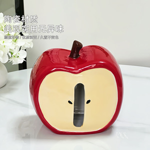 创意苹果核纸巾盒家用客厅茶几陶瓷纸巾收纳盒装饰摆件餐巾纸抽盒