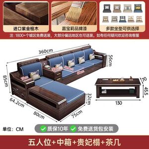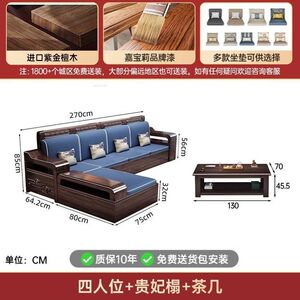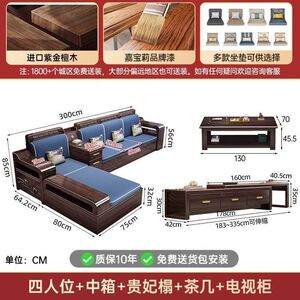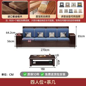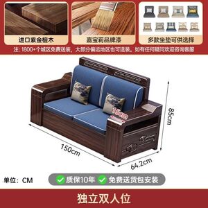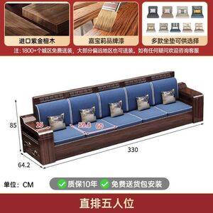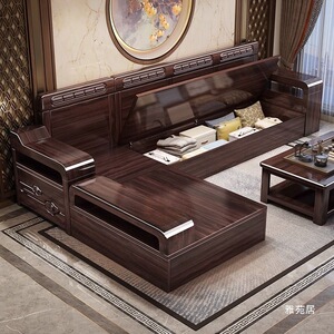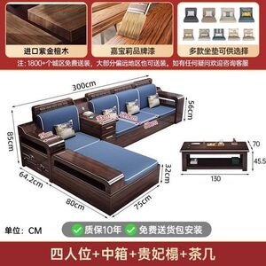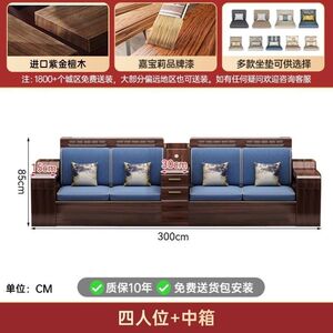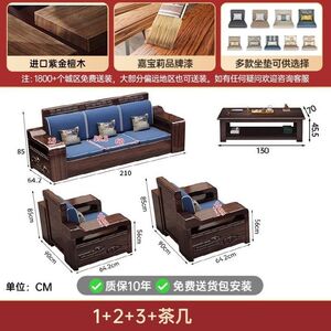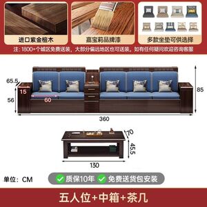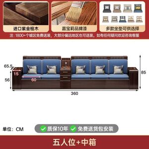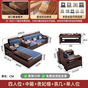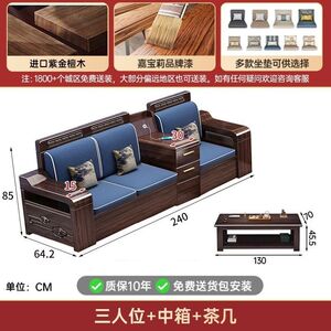 现代新中式紫金檀木实木沙发客厅家用组合小户型冬夏储物两用家具