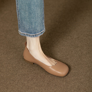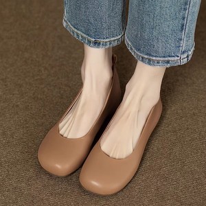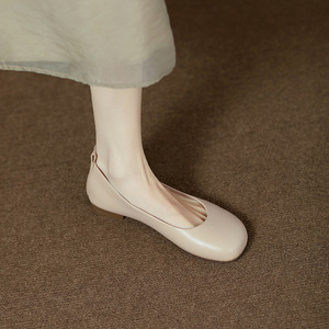 巨柔软真皮平底芭蕾舞单鞋女2025春秋新款百搭舒适圆头浅口奶奶鞋