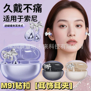 【蝶結びダイヤモンドバックル】M91在庫ありイヤークリップAI翻訳イヤークリップOWS非インイヤーイヤリングTWSブルートゥースイヤホン