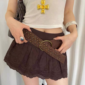 レトロボヘミアンブラウンベルトレディースニッチリベットエスニックスタイルベルトスカートジーンズウエストバンドトレンド