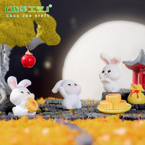微景观中秋节玉兔子月饼可爱动物公仔装饰品配件树脂工艺品小摆件