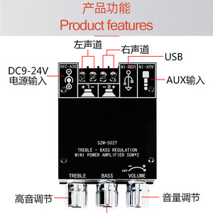 车载功放板双声道蓝牙音箱模块立体声超重低音大功率功放专业批发