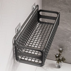 免打孔卫生间收纳架沥水壁挂厕所洗漱用品挂架铁艺浴室置物架