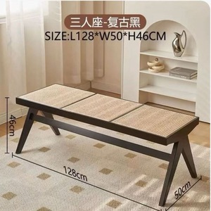 無垢材籐ベンチ チャンディガルチェア 中古ベンチ 和風デザイナー レトロ ホーム ホームステイ 靴交換ベンチ