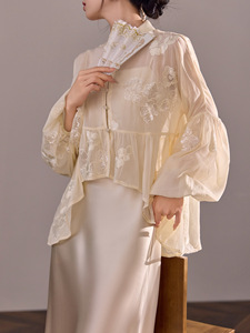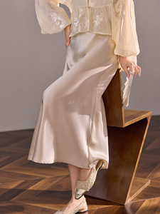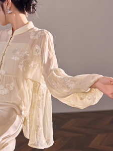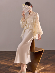 国风刺绣灯笼袖上衣外套女装新中式纯色气质醋酸吊带裙套装 N4042