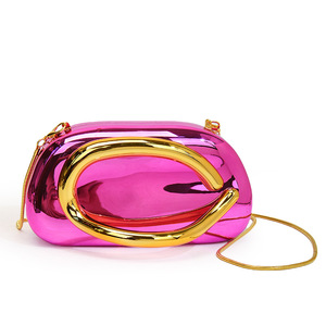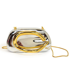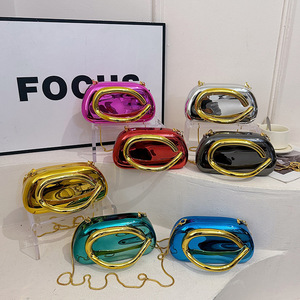 跨境外贸女包2025新款欧美时尚金属手腕包个性亮面链条斜挎晚宴包